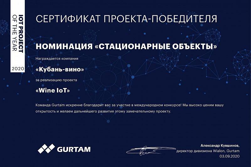 Компания «Интерра» совместно с винодельней «Кубань-Вино» одержали победу в номинации «Стационарные объекты», представив проект автоматизации и телематического контроля всего комплекса производства вина.