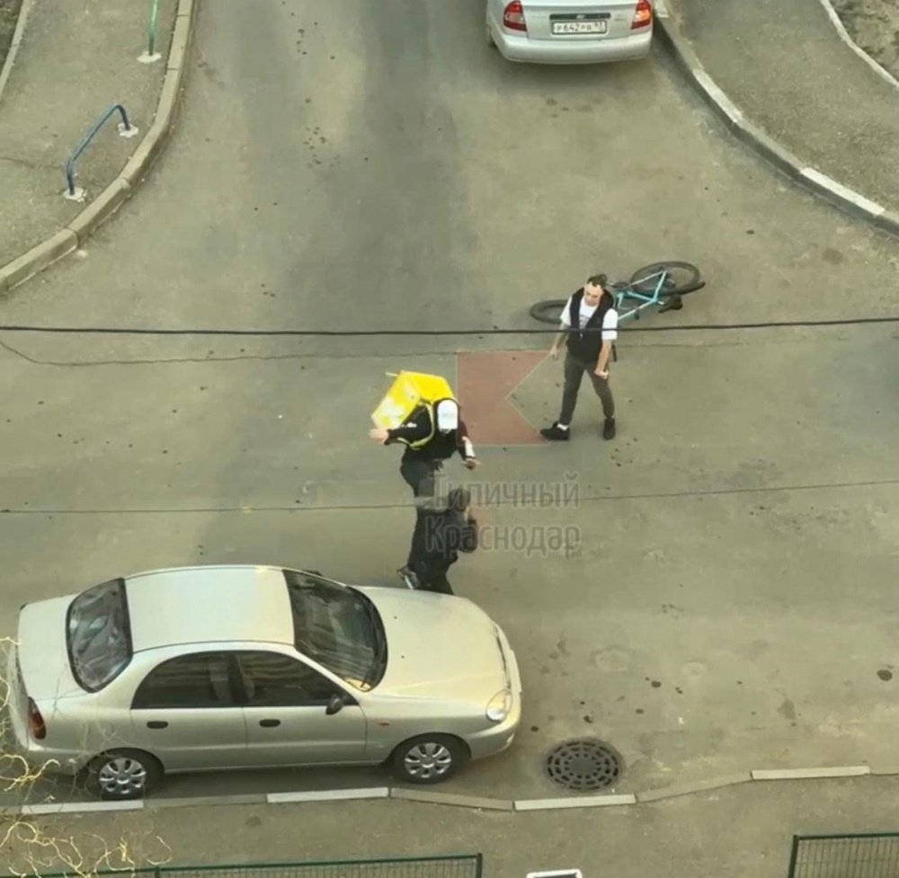 Драка курьера с прохожим попала на видео в Краснодаре