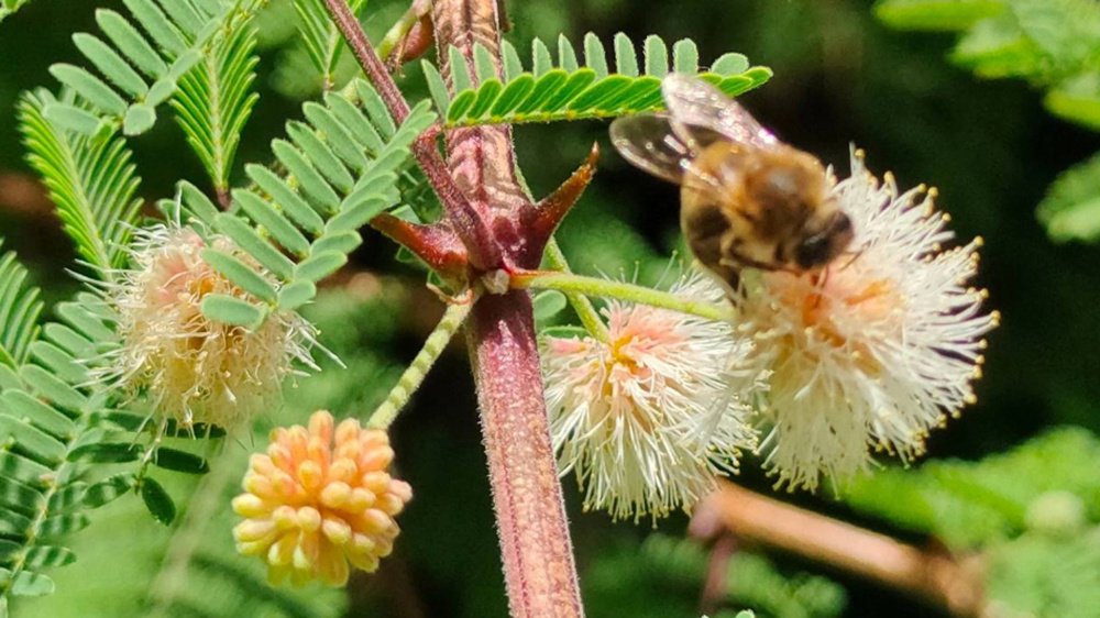 Белые бутоны распустились на мексиканской мимозе в Сочи