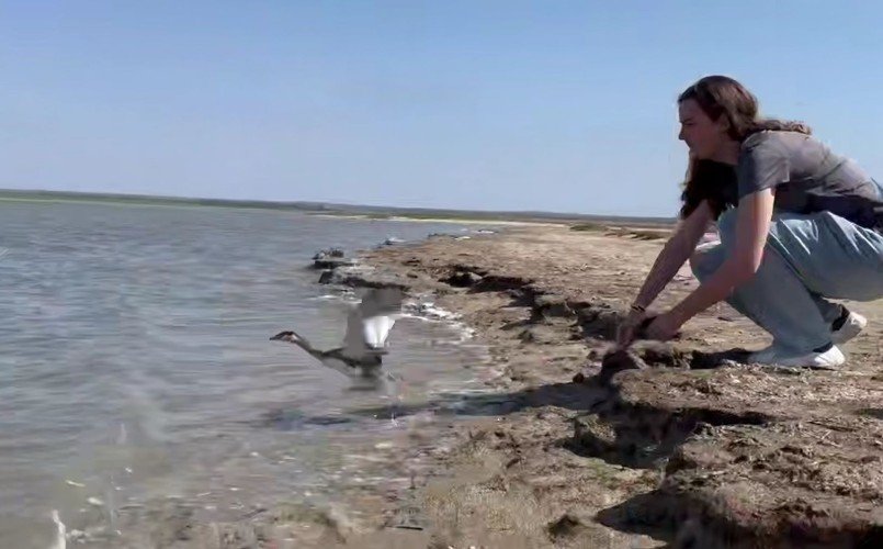 Птиц выпустили на побережье Динского залива в ст. Запорожской Темрюкского района,